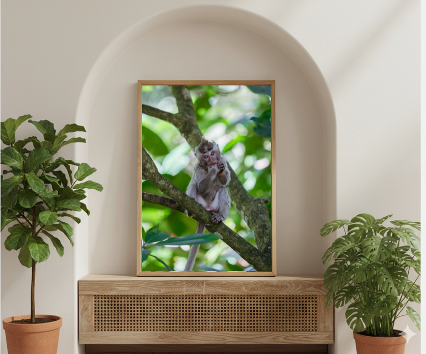 I used to see photos like this and think they were incredible. I never thought about the behind-the-scenes of how they were taken, so let me tell you. I was travelling with the absolute essentials in a 25L backpack, including all my camera gear, which left space for maybe 4 outfits. I didn’t mind because I thought it would be a short trip, but I ended up being on the road for almost 3 months… I just had to make do with the small amount of stuff I had, and I was travelling just by bike, so the lighter the better. I packed up and drove from the South to the North of Lombok for 3 nights. My goal was to get some photos of all the different monkey species living there. I spent hours in the forest walking around, looking up into the trees, but came out empty-handed. I saw some monkeys from a distance, but they were either too far away or the shot was obscured by trees. I felt defeated that I didn’t get ‘the shot.’ After a few days, I got impatient and left to go back to the ocean… But I knew I wasn’t done. It was annoying me that I had driven the whole way and didn’t get ‘The Shot.’ So a week later, I drove all the way back…